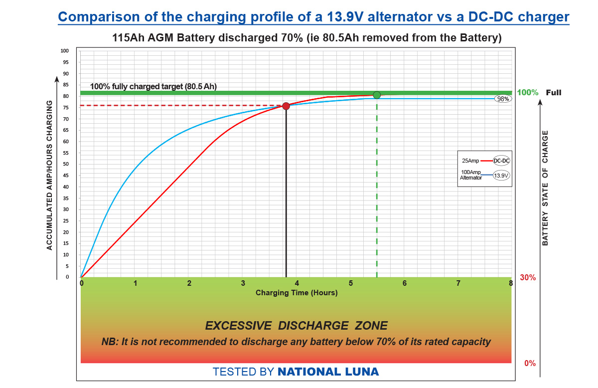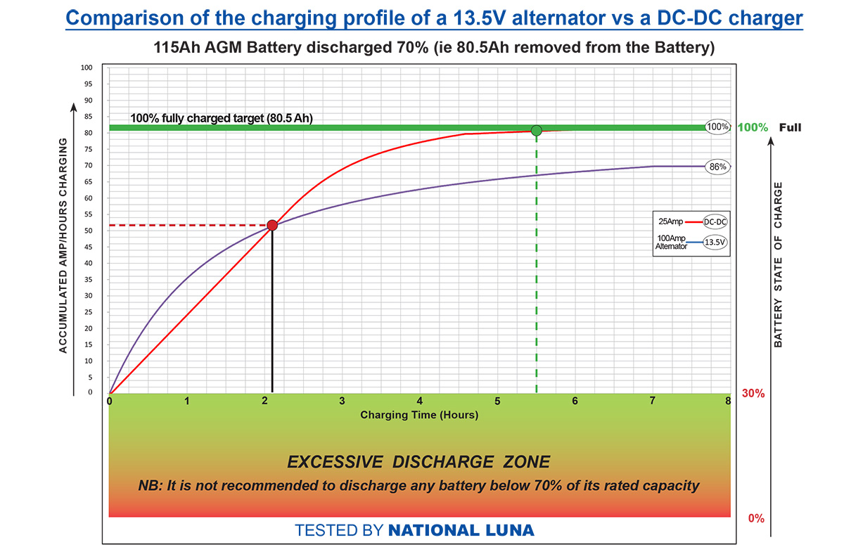 To make matters worse, because most of the DC-DC chargers were 20-25A units, it meant that the majority of them failed to deliver the necessary power when it was most needed: within the first few hours of driving.