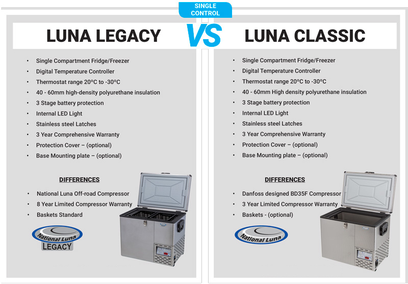 With this in mind, National Luna’s latest value offering comes in the form of an entirely new ‘Legacy Range’ of fridges which are all equipped with the new Off-Road Compressor. Fortunately, with eleven fridge volumes on offer, the ‘Legacy Range’ doesn’t replace the existing ‘Classic Range’ of Danfoss equipped fridges, but instead, supplements National Luna’s offering with better value, pricing, and the standard fitment of fridge baskets.
